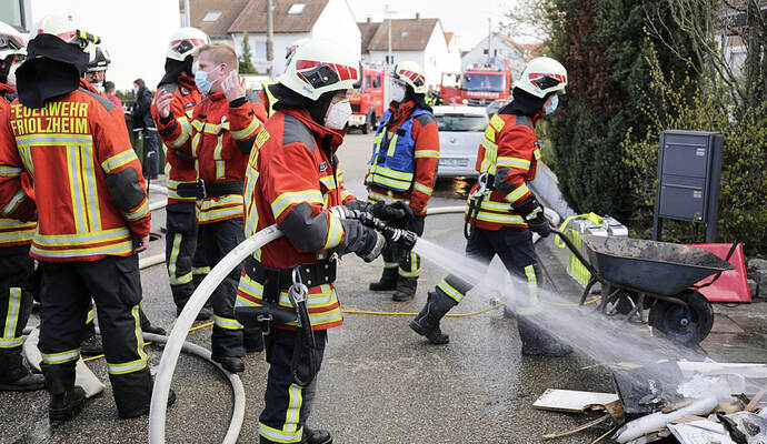 Mit Atemschutzmasken betrat ein Trupp der 29 Rettungskräfte aus Friolzheim und Wimsheim die Wohnung, um den Brand zu löschen. Die Bewohner hatten den Brandmeldealarm gehört und sich sofort Freie gerettet, so dass niemand verletzt wurde. Nach eineinhalb Stunden war der Einsatz vorbei. Die Brandursache ist noch unklar. Neben den Feuerwehren waren auch die Polizei und das DRK vor Ort.
