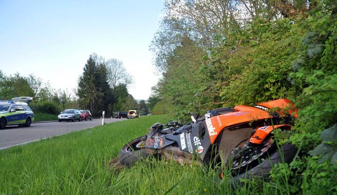 Neuenbürg-Dennach. Bei einem missglückten Überholmanöver nach einer zu spät eingeleiteten Bremsaktion am Sonntag zwischen Straubenhardt-Schwann und Neuenbürg-Dennach prallte ein Motorradfahrer gegen die Fahrerseite eines vor ihm fahrenden Autos.