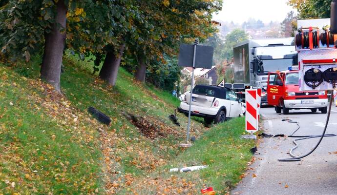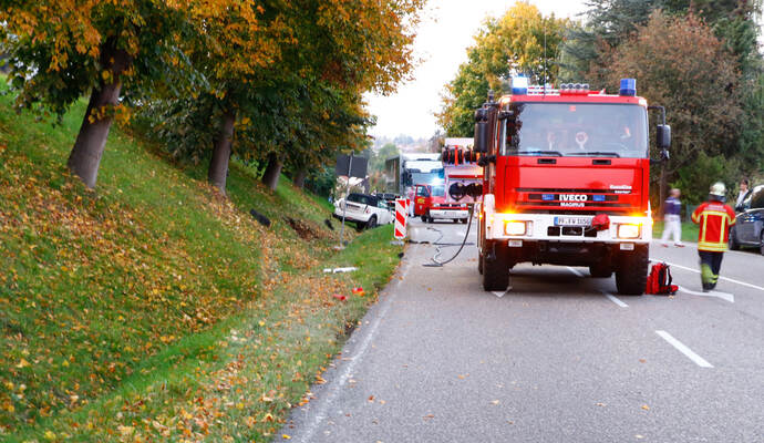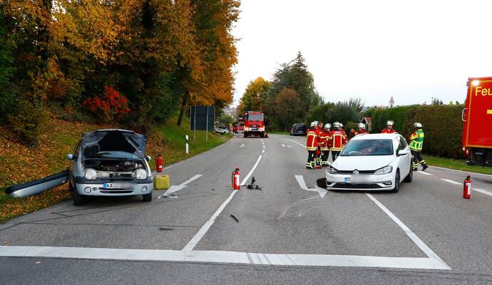 Neben der Feuerwehr Königsbach-Stein mit drei Fahrzeugen und 17 Einsatzkräften waren auch zwei Rettungsfahrzeuge, Abschleppdienste und die Polizei vor Ort. Gegen 19.40 Uhr konnte die Einmündung für den Verkehr wieder freigegeben werden.