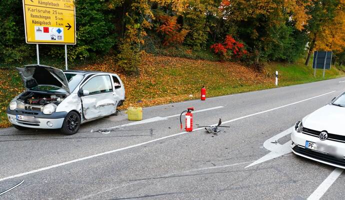Königsbach-Stein. Ein schwerer Verkehrsunfall hat sich am Dienstagabend gegen 18 Uhr im Bereich der Landesstraßen 570 und 611 bei Königsbach-Stein ereignet. Zwei Personen wurden dabei leicht verletzt, eine blieb unverletzt.
