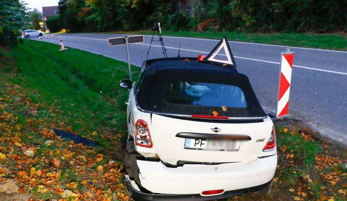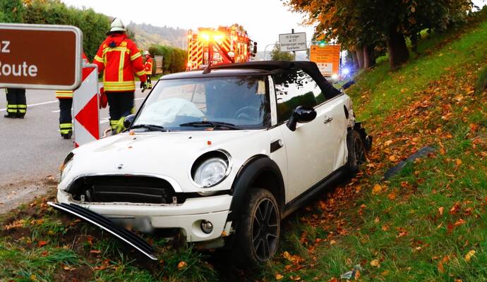 Laut Polizei fuhr eine 53-Jährige gegen 18 Uhr mit ihrem Mini auf der L570 von Kämpfelbach-Bilfingen kommend in Richtung Königsbach, als sie an der Einmündung mit der L611 aus noch unerklärlichen Gründen an zwei wartenden Autos vorbei- und über eine Sperrfläche und die rote Ampel gefahren sei. In der Gegenrichtung warteten laut Mitteilung ein 53-Jähriger in einem Renault Twingo und eine 31-Jährige in einem VW Passat auf Grün. Der Mini sei zwischen den beiden Fahrzeugen durchgefahren, habe diese erheblich beschädigt und sei dann nach 50 bis 70 Metern im Graben zum Stehen gekommen.