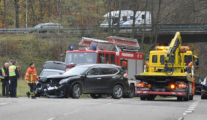 Der 45 Jahre alte Beifahrer der Unfallverursacherin wurde hierbei schwer verletzt und musste nach erster Versorgung durch einen Notarzt mit einem Rettungsdienst in ein Krankenhaus eingeliefert werden. Die 30-jährige Toyota-Fahrerin wurde aufgrund ihrer Schwangerschaft ebenfalls vorsorglich in einer Klinik aufgenommen. Die Verursacherin blieb unverletzt.