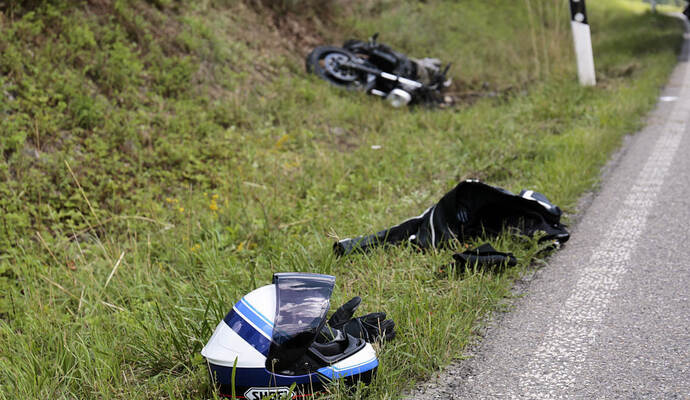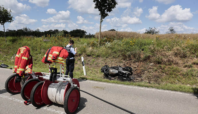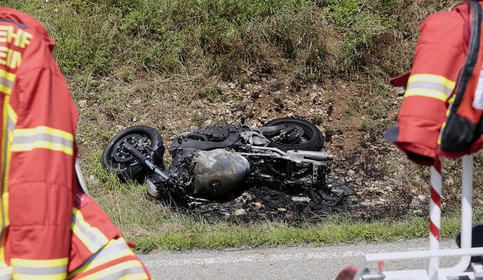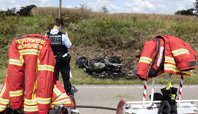 Motorrad bei Mönsheim von Straße abgekommen und in Brand geraten - Fahrer verletzt