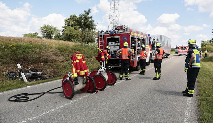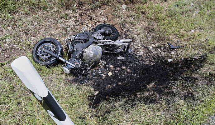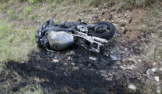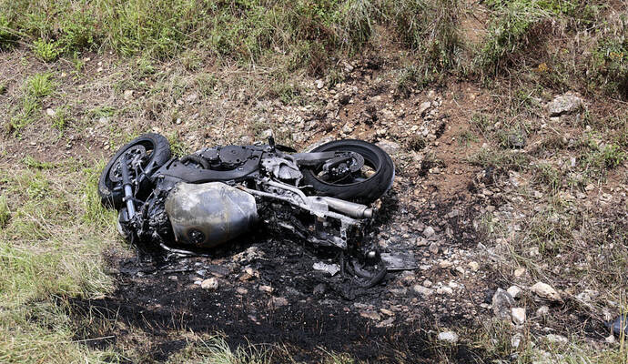 In Folge des Unfalls fing das Motorrad Feuer und brannte letztendlich aus, der Fahrer wurde per Rettungshubschrauber in ein Krankenhaus geflogen.