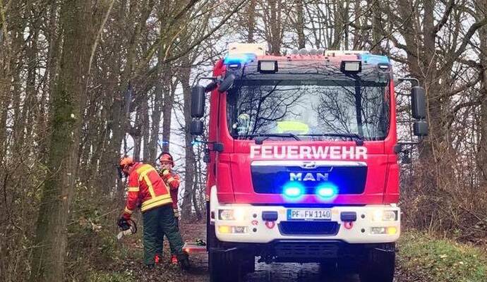Dort fiel zwischen den Ortsteilen Niefern und Öschelbronn ein Baum auf eine Verbindungsstraße und blockierte diese. Die Feuerwehr konnte den Baum rasch beseitigen, die Fahrbahn säubern und sie wieder freigeben.