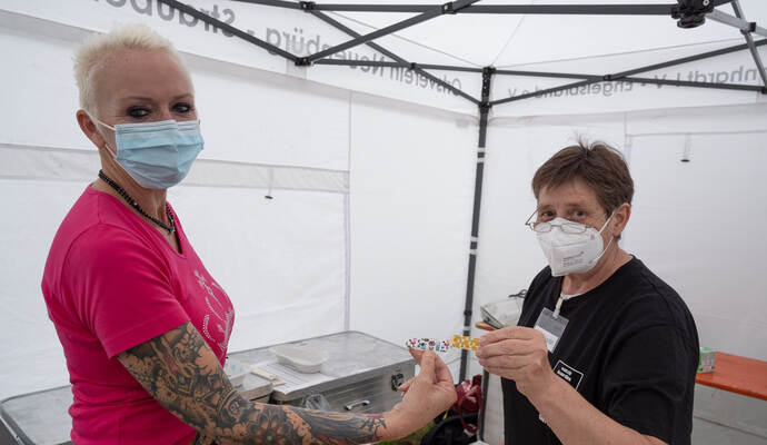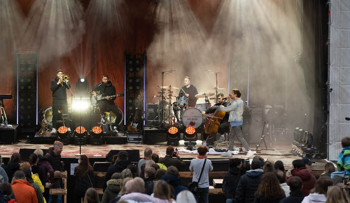 Vor dem Konzert hatten die Besucher die Möglichkeit, sich gegen das Coronavirus impfen zu lassen und ein Dinopflaster zu ergattern - was aber nur einige wenige nutzten. Auch in den kommenden Tagen wird es das Angebot jeweils vor den Konzerten geben.