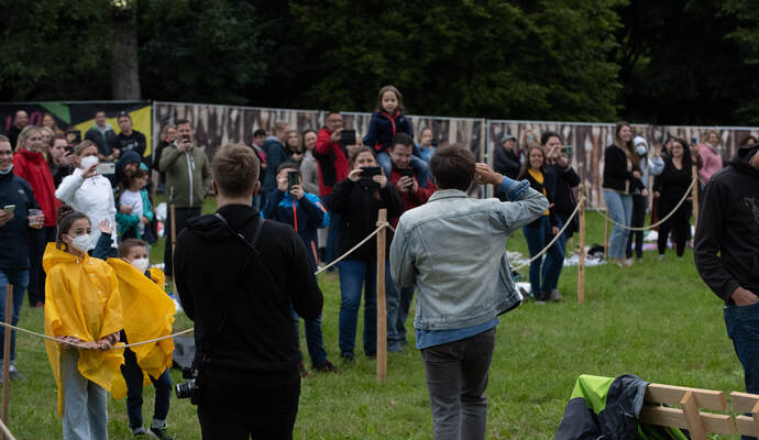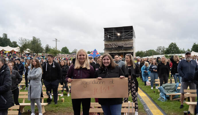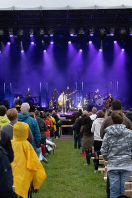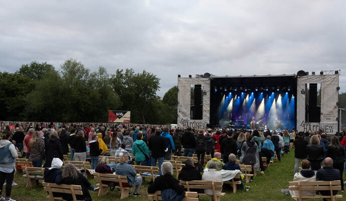 Auch vor der Bühne wurden die Abstände eingehalten. Die meisten Fans hatten vorausschauend ein Regencape mitgebracht, auch wenn es bis auf ein paar Tropfen trocken blieb.