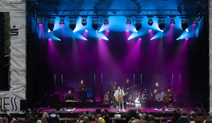 Im Vergleich zu vergangenen Happiness-Festivals hat sich der Auftakt des "Little Happiness" wie ein Wohnzimmerkonzert angefühlt. Wo sich sonst vor der Bühne Tausende dicht drängten, war an diesem Abend gemütliches Feiern auf dem "Bänkle" oder den mitgebrachten Picknickdecken angesagt, was der Stimmung aber kein bisschen schadete. Die Zuschauer - oder "Happianer", wie sie liebevoll genannt werden - waren nach rund zwei Stunden Show von Max Giesinger rundum glücklich.