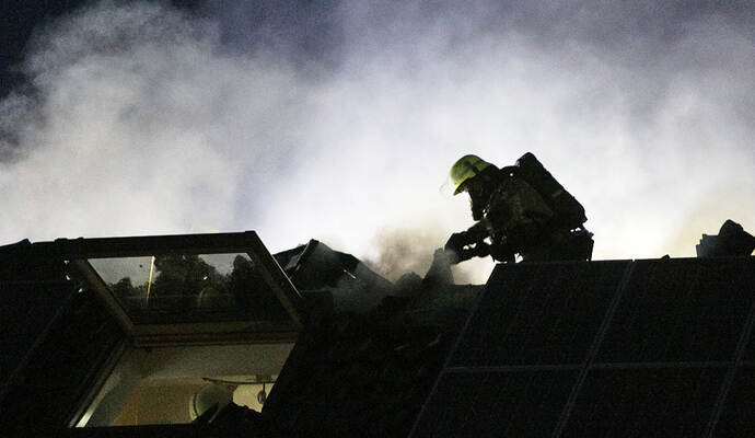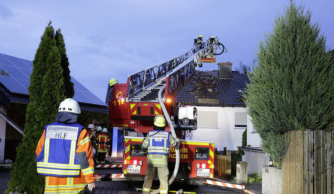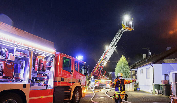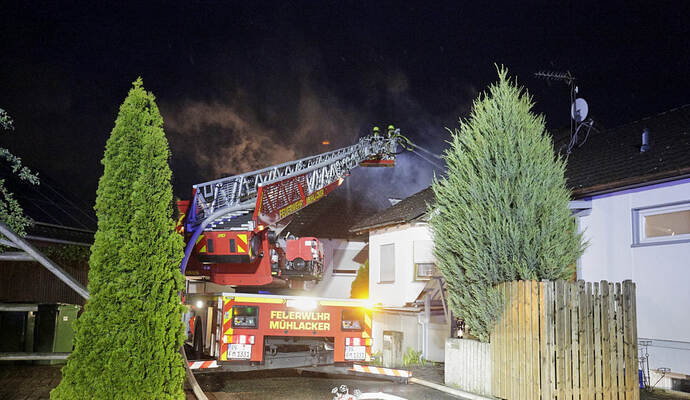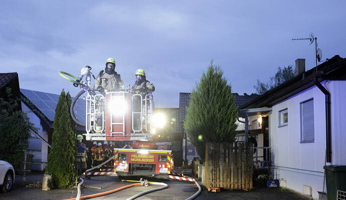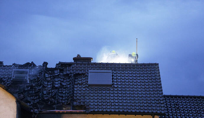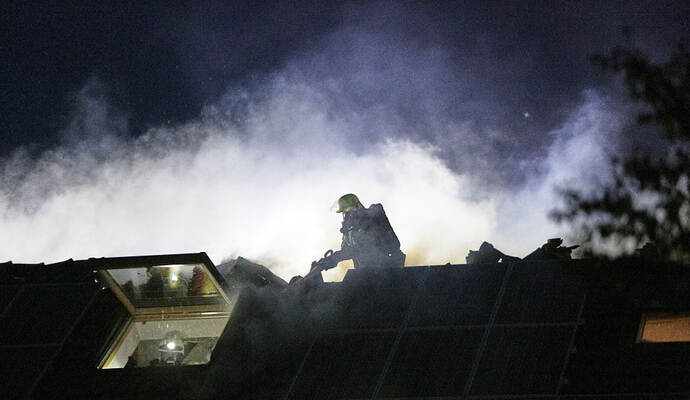 Die Flammen griffen laut Mitteilung schnell über die Fassade des Hauses auf das Dach und die Dachgeschosswohnung über. Letztere brannte demnach komplett aus, auch die beiden darunter liegenden Wohnungen sind nach den Löscharbeiten unbewohnbar.