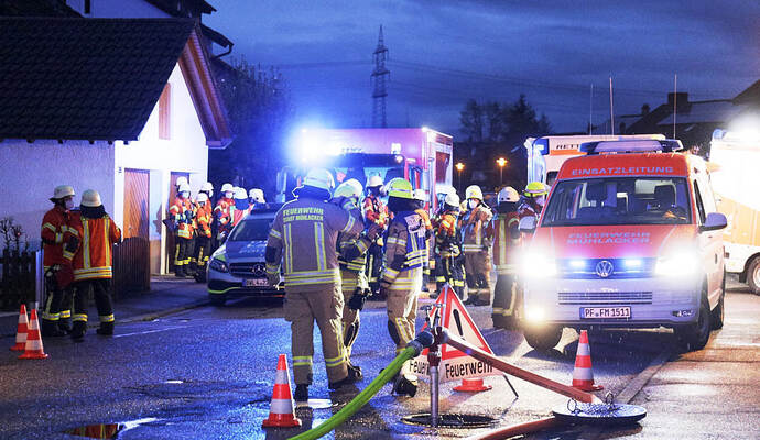 Wiernsheim-Pinache. In der Talstraße in Wiernsheim-Pinache hat am frühen Sonntagmorgen ein Haus gebrannt. Bei den Löscharbeiten wurden laut Polizei zwei Feuerwehrleute leicht verletzt. Der Schaden wird auf rund eine halbe Million Euro geschätzt, das Haus ist unbewohnbar.