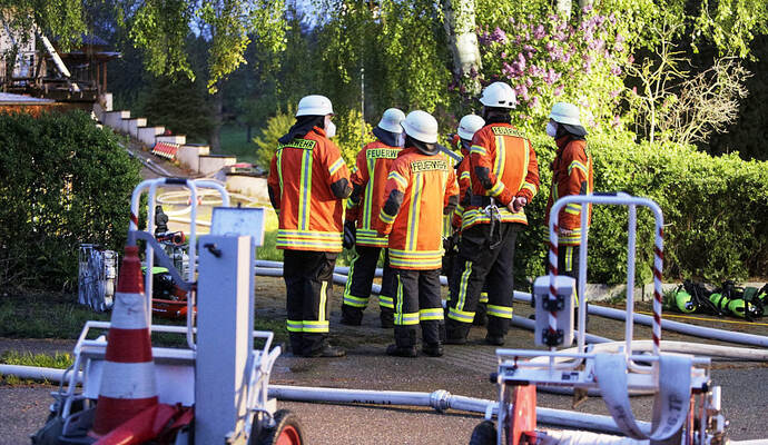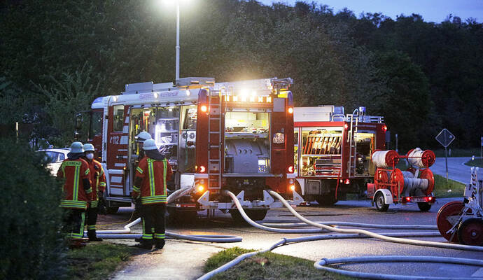 Laut Polizeisprecher Jürgen Fabian wurde das Feuer um kurz nach 4 Uhr gemeldet. Rund drei Stunden später, kurz nach 7 Uhr, sei der Brand gelöscht gewesen. Gegen 8.30 Uhr habe ihm die Feuerwehr aber gemeldet, dass diese weiter eine sogenannte Brandwache vor Ort halte, also kontrolliert, dass keine etwaigen Glutnester erneut aufflammen. Zwei Streifenwagen der Polizei waren ebenfalls weiter vor Ort.