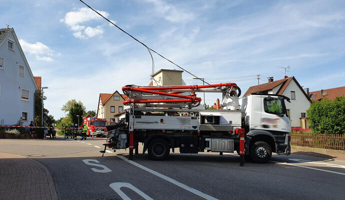 Betonpumpe bleibt an Leitungskabel hängen: Unfall sorgt für Stromausfall in Wimsheim