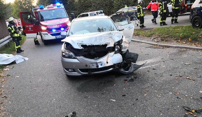 Der Mazda wurde nach rechts in den Parkplatz abgewiesen und der VW prallte am Fahrbahnrand gegen einen Baum. Im VW wurden die Fahrerin und der 83-jährige Beifahrer schwer verletzt. Der Fahrer des Mazda wurde leicht verletzt. Seine beiden 13 Jahre und 14 Jahre alten Mitfahrerinnen wurden nicht verletzt.