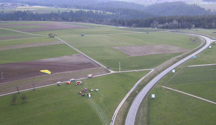 Hierdurch knickten zwei etwa 12 Meter hohe Strommasten in einer Höhe von rund acht Metern ein. Dennoch gelangte der Ballonkorb sicher auf den Boden und die vier Passagiere, sowie ihr Pilot, konnten den Korb unverletzt verlassen. Durch einen Lichtblitz, der beim Kontakt des Ballon mit der Stromleitung entstand, wurden die Ballonhülle und mehrere Trag- und Hüllenseile beschädigt. Der Sachschaden beläuft sich hierbei auf rund 1500 Euro. An den Strommasten sowie der Stromleitung entstand laut Polizei ein Sachschaden von mindestens 50.000 Euro.