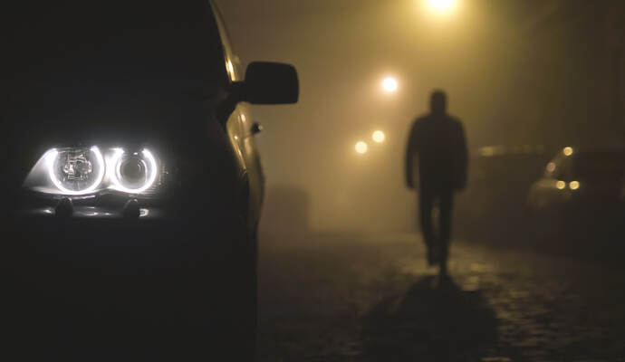 Betrunkener Golf-Fahrer kracht nachts beinahe in Fußgänger