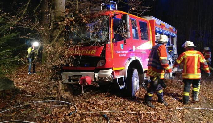 Feuerwehrfahrzeug prallt gegen Baum - Feuerwehrmann schwer verletzt