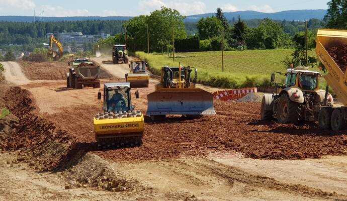 Karlsbad-Langensteinbach. Der Ausbau des Autobahnzubringers bei Langensteinbach liegt voll im Zeitplan: Seit Anfang August 2019 werden die Entwässerungskanäle der neuen Trasse hergestellt. Das teilt die Gemeinde Karlsbad in einer Pressemitteilung mit.