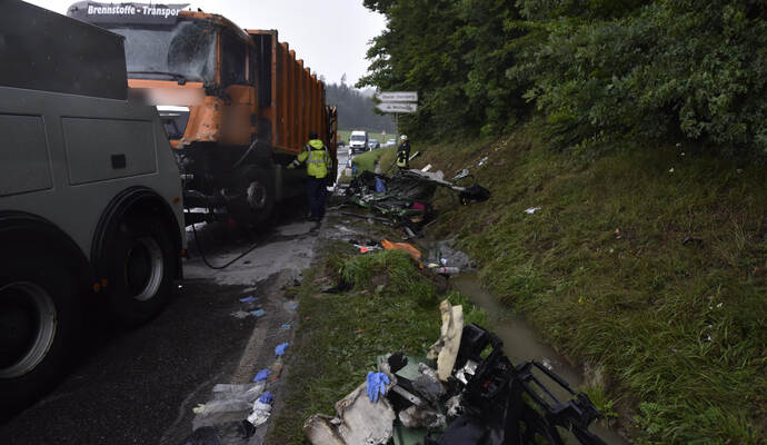 Kurz darauf soll der Müllwagenfahrer der Staatsanwaltschaft zufolge zu schnell in eine Kreuzung gefahren sein, wobei sein Fahrzeug auf das Auto kippte.