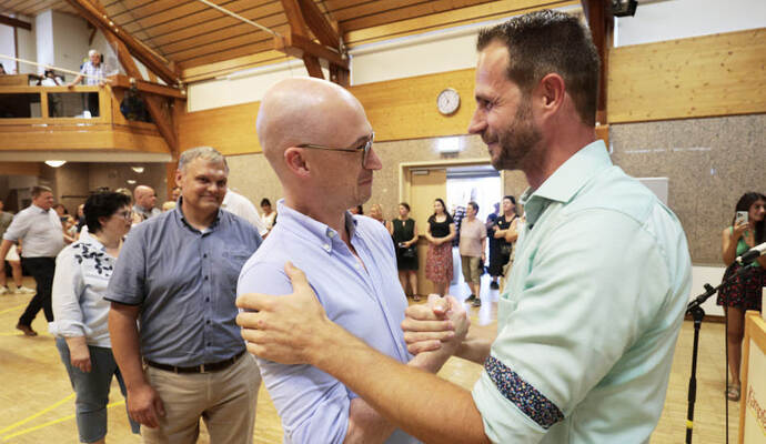 Schüttler trug die Niederlage mit Fassung: Sie wünsche Maag und der Gemeinde für die Zukunft alles Gute. Auch Giek zeigte sich als fairer Verlierer. „Ich freue mich, dass es im ersten Wahlgang ein Ergebnis gab“, sagte er – vor allem mit Blick auf die Arbeitsbelastung für seine Kolleginnen und Kollegen. Er will der Gemeinde weiterhin erhalten bleiben. „Ich werde mich morgen mit vielen neuen Erfahrungen wieder als Hauptamtsleiter an meinen Schreibtisch setzen und meine Arbeit machen“, so Giek. Er freue sich auf die Zusammenarbeit mit Thomas Maag. Dies beruht offenbar auf Gegenseitigkeit: „Es gibt nach so einem Wahlkampf nichts, was zwei Männer nicht bei einem Glas Bier aus der Welt schaffen könnten“, zeigte sich Maag überzeugt.