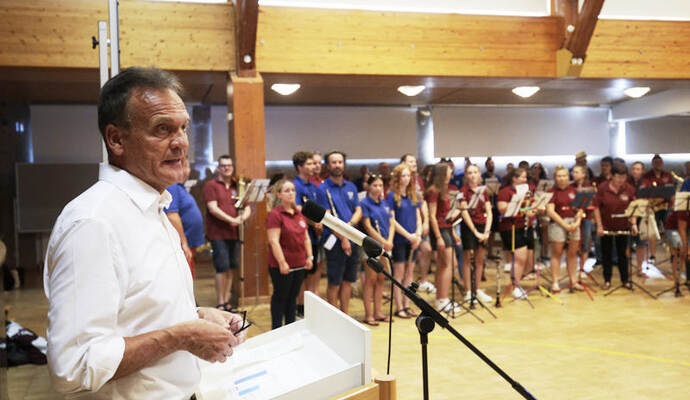 Während die Musikvereine aus Ersingen und Bilfingen gemeinsam das Badnerlied spielten, nahm der sichtlich glückliche künftige Rathauschef eine nicht enden wollende Reihe an Glückwünschen entgegen – als erstes hatte er die seiner beiden Kontrahenten entgegengenommen. In seiner knapp gehaltenen Rede dankte er neben den Wählerinnen und Wählern vor allem seiner Familie und weiteren Unterstützern. Das Ergebnis gebe „Rückenwind für frischen Wind“, so der Stimmenkönig: „Ich freue mich auf mega acht Jahre!“